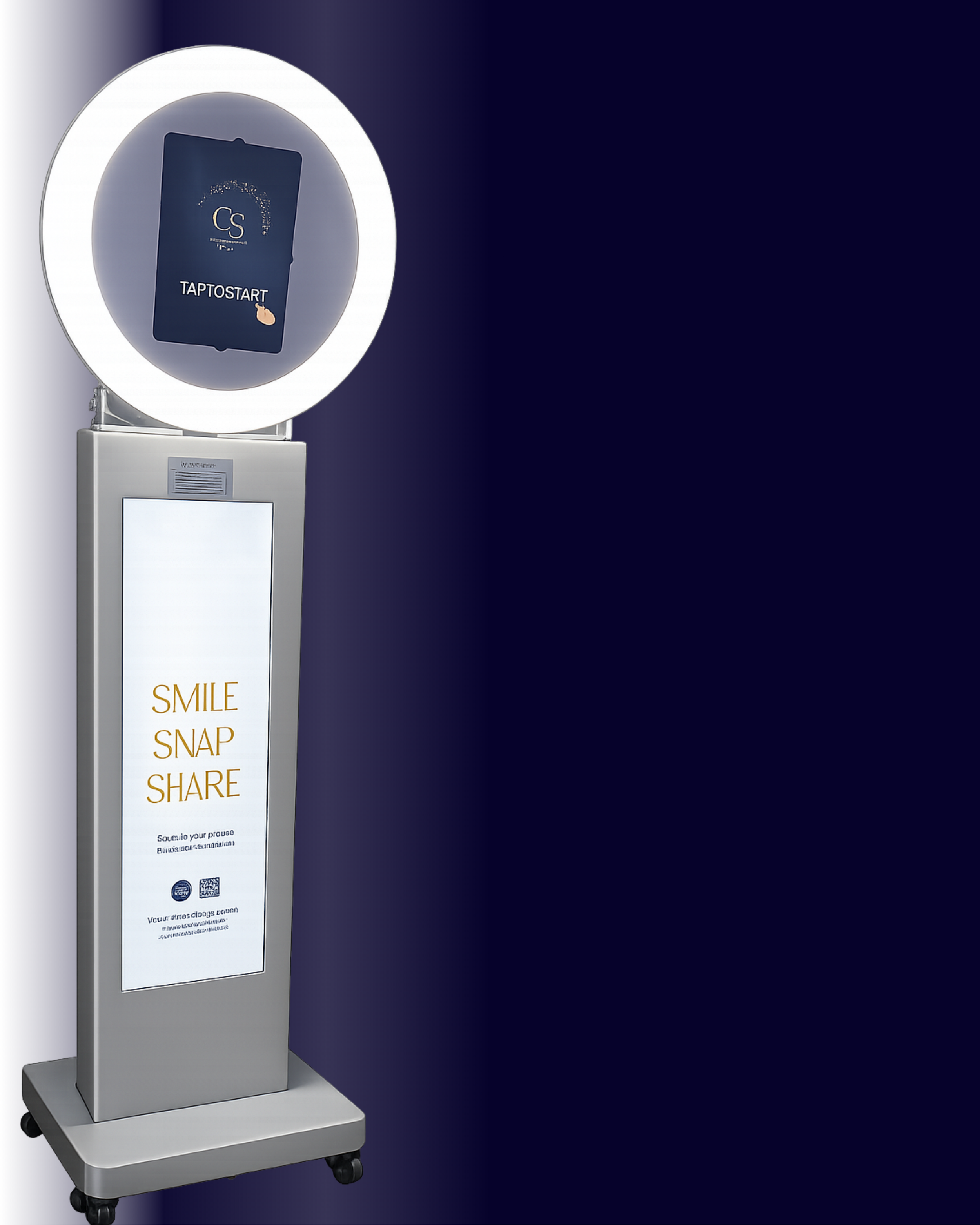 The Customisable Photo Booth offers a unique feature which allows you to customise the Photo Booth interface display screen and the Photo Booth monitor with any selected images, videos and GIFs, making it ideal for branding and personalisation giving your Photo Booth experience that extra tailor made touch.